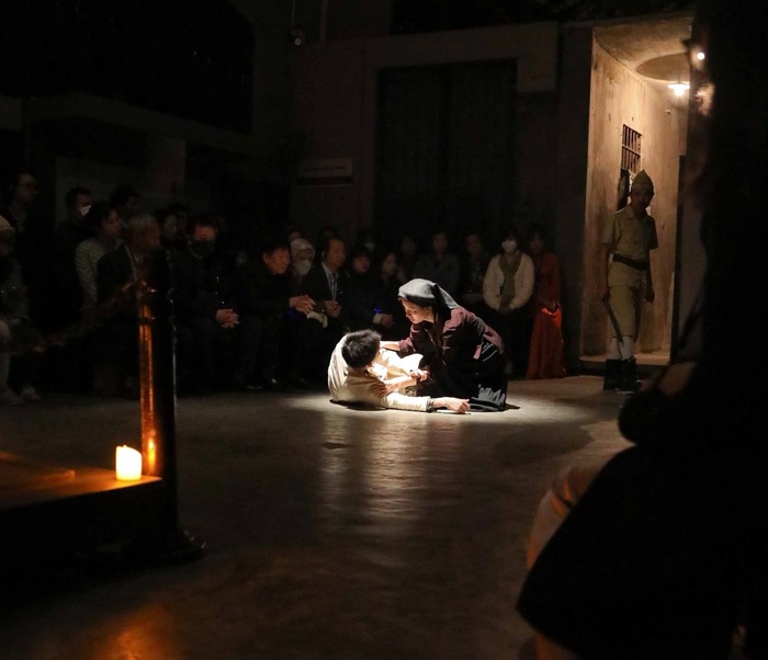 Le tour de nuit « Nuit Sacrée » à la prison Maison Centrale est conçu autour de plusieurs thèmes. Chaque thème offre une expérience et des émotions uniques, dépeignant différentes facettes de l’histoire et de l’esprit de lutte indomptable du peuple vietnamien.