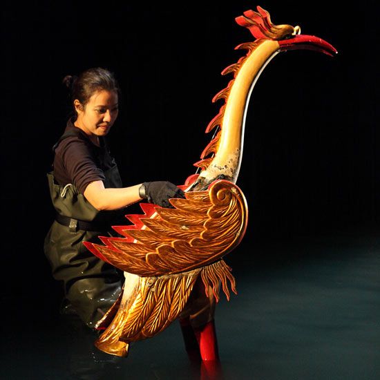 Les marionnettes sont soigneusement sculptées pour leur donner un visage vivant, tout en respectant les normes conventionnelles de « Vérité – Bonté – Beauté ». Les marionnettes féminines ont un visage ovale et un derrière étroit, tandis que les marionnettes masculines ont souvent un visage carré et des dents noires. Le socle est la partie qui maintient la marionnette en suspension et où est installée la base de contrôle; l’étanchéité est donc un facteur important. Ce socle est souvent en mousse ou en bois léger pour maintenir l’équilibre. De plus, il contient également le système de contrôle, comme les fils et les moteurs, qui permet à la marionnette de bouger.