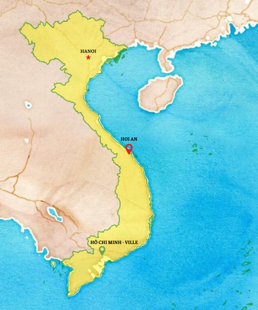La vieille ville de Hoi An est située sur le cours inférieur de la rivière Thu Bon, dans la plaine côtière de Da Nang, au Vietnam, à environ 30 km au sud du centre-ville. Grâce à des facteurs géographiques et climatiques favorables, Hoi An était autrefois un port de commerce international dynamique, lieu de rencontre des navires marchands japonais, chinois et occidentaux aux XVIIe et XVIIIe siècles. Avant cette période, on trouvait également des traces du port commercial de Champa, souvent mentionné le long de la route maritime de la soie.