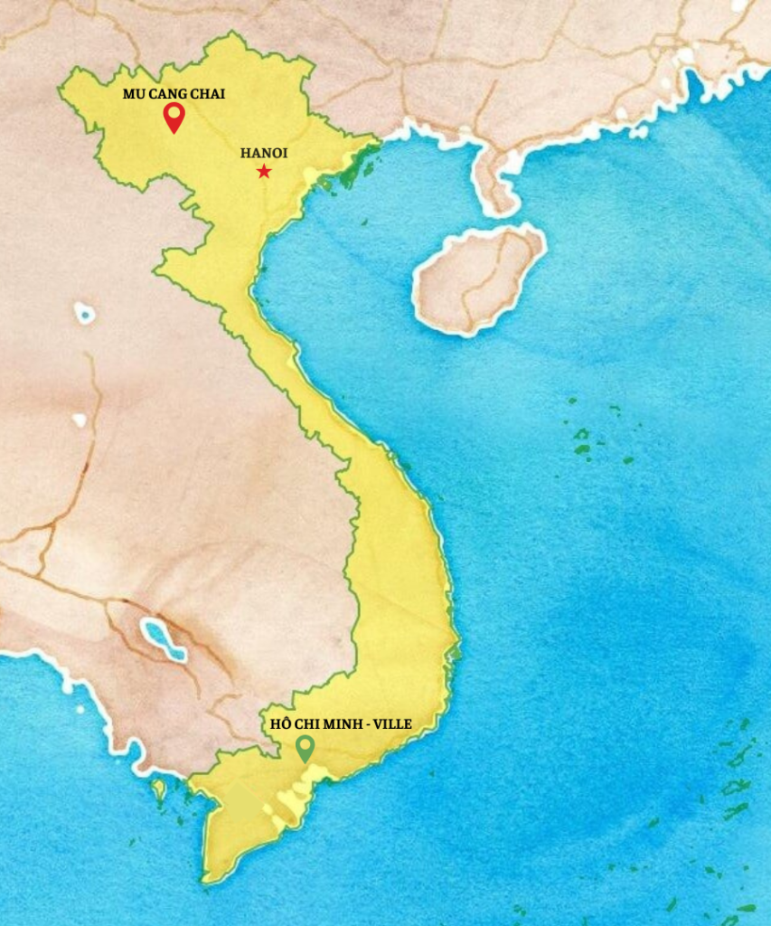 Mu Cang Chai est une destination touristique prisée par de nombreux touristes. Connue pour son caractère montagneux, elle se situe au nord-ouest de la province de Yen Bai, à 180 km de la ville de Yen Bai et à plus de 300 km de la capitale Hanoï.