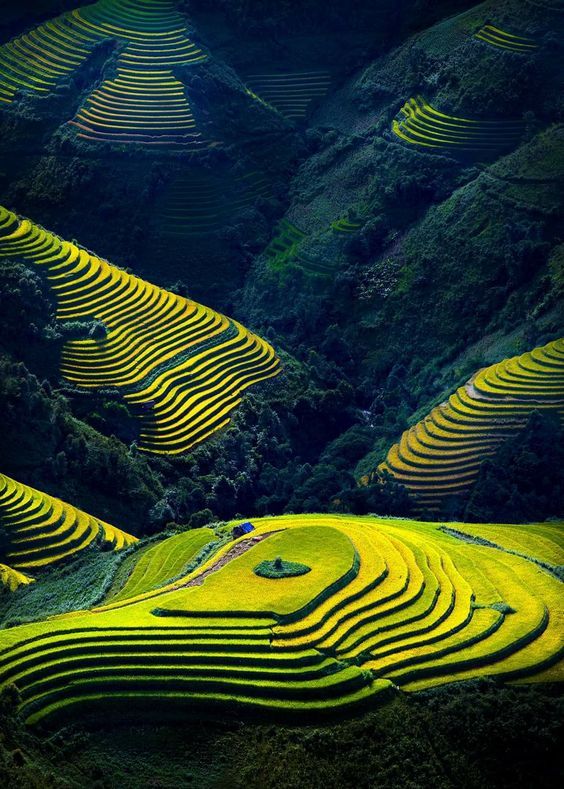 La culture des cultures en terrasses des Mong de La Pan Tan, Che Cu Nha et De Su Phinh a donné à Mu Cang Chai (qui signifie “village aux arbres secs’’) son nom: une colline verdoyante et pleine de vitalité. Les champs en terrasses s’étendent, couche après couche, jusqu’au ciel. La saison des récoltes à Mu Cang Chai a généralement lieu en automne, vers septembre-octobre.