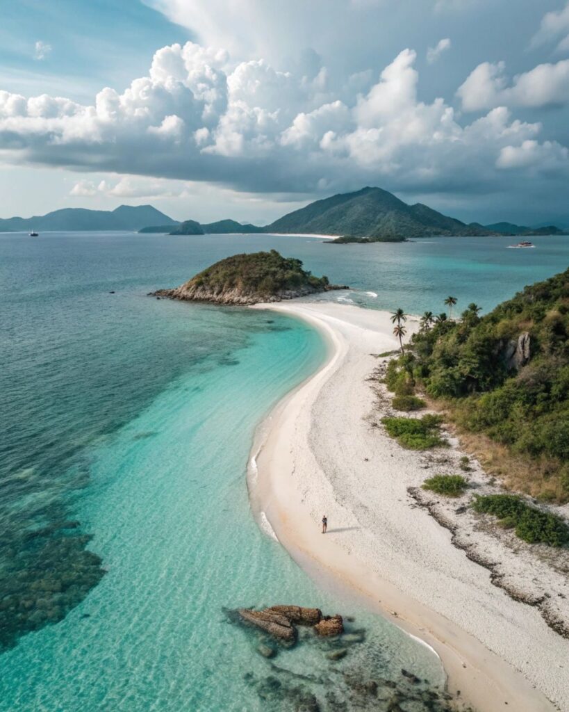 Excursion en kayak puis arrêt à la plage de Titop pour baignade ou montée au sommet de l’île afin d’avoir une vue panoramique sur la baie.