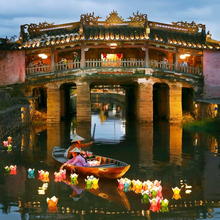 En soirée, balade libre dans la vieille ville illuminée par des lanternes colorées, ambiance féérique garantie ! Vous aurez aussi l’occasion de goûter des spécialités locales, de jouer à des jeux folkloriques, ou de faire flotter une lanterne sur la rivière Thu Bon.
